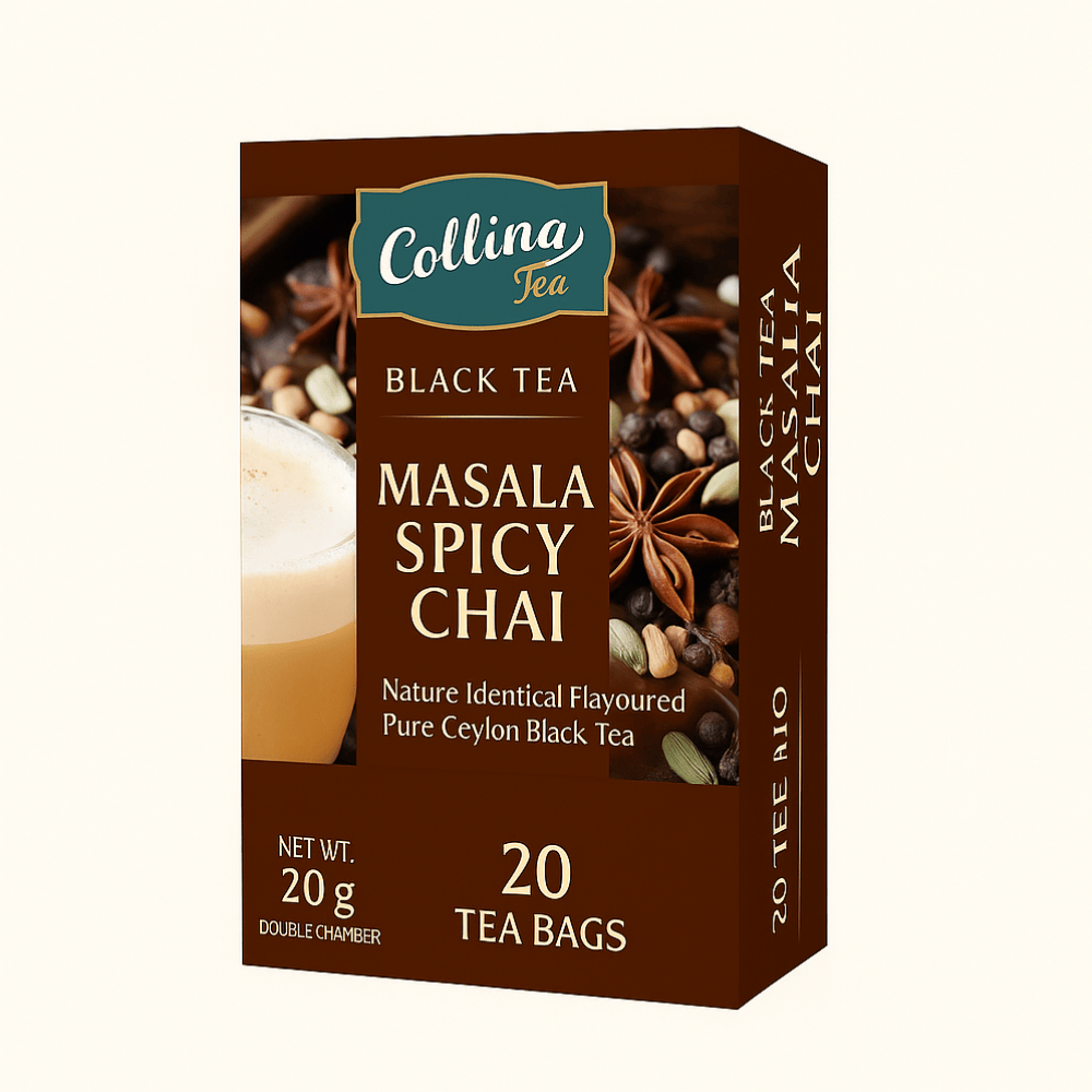 An intense fusion of traditional masala spices and robust Ceylon black tea, creating a bold and aromatic brew with a fiery kick and comforting warmth in every sip.